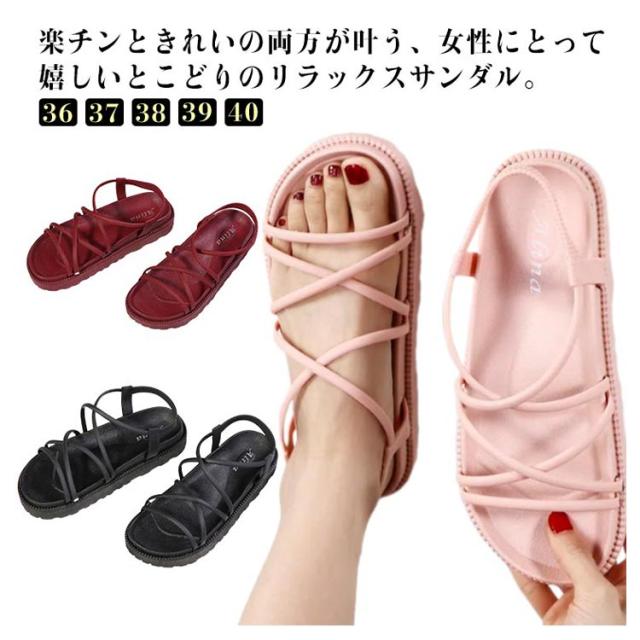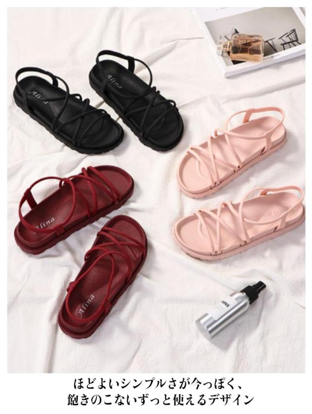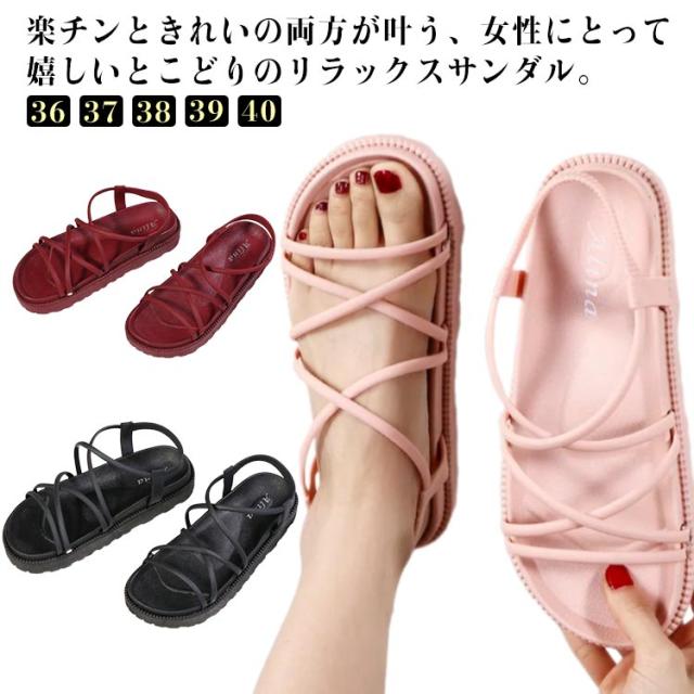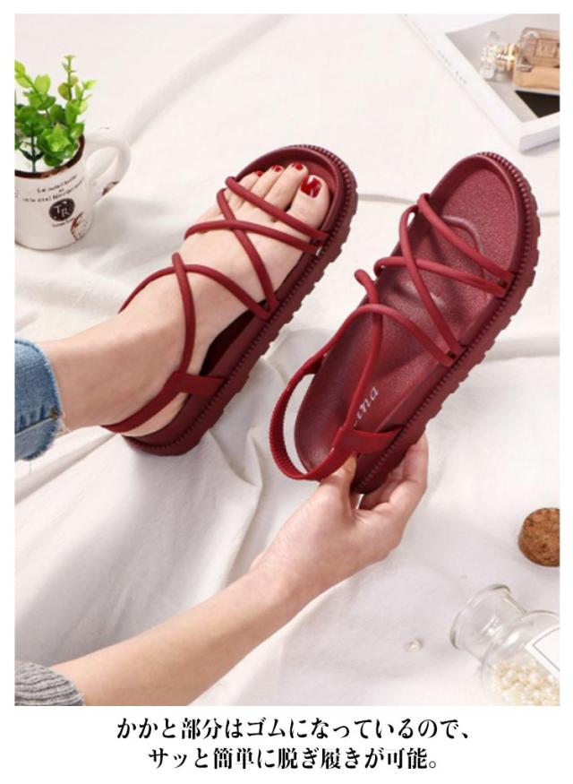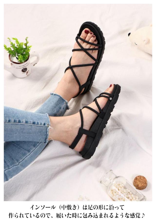 ストラップサンダル レディース 春夏 ぺたんこ ローヒール シンプル 履きやすい クッション おしゃれ 安定感 痛くない クロスベルト バックベルト 脱げない 靴 歩きやすい ローヒール 美脚靴 シューズ 滑り止め カジュアル リゾート 送料無料