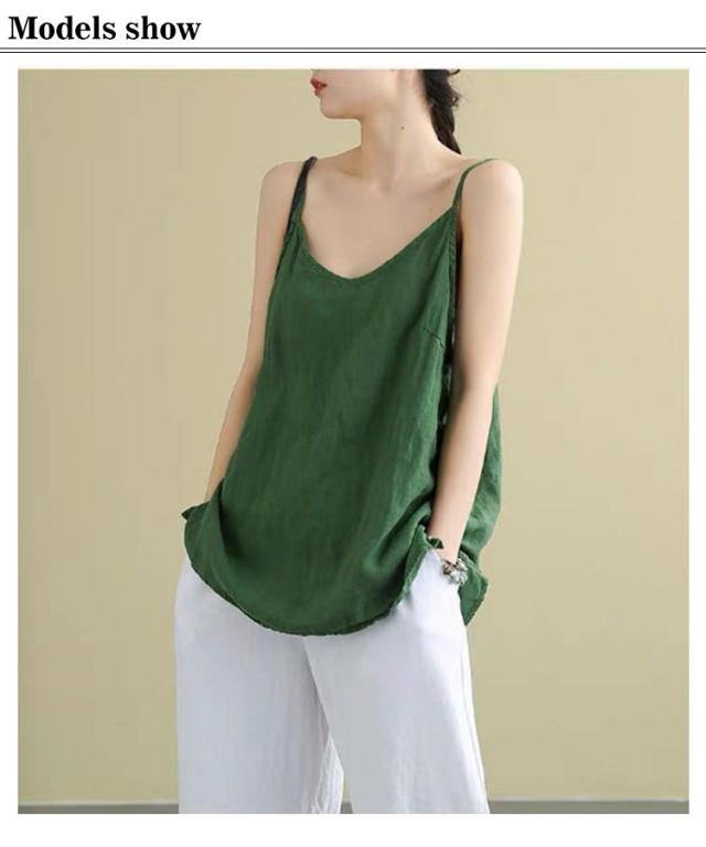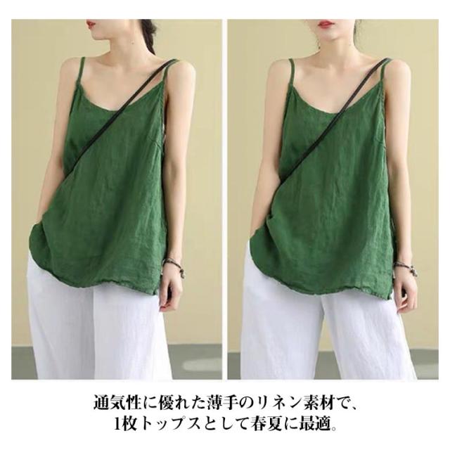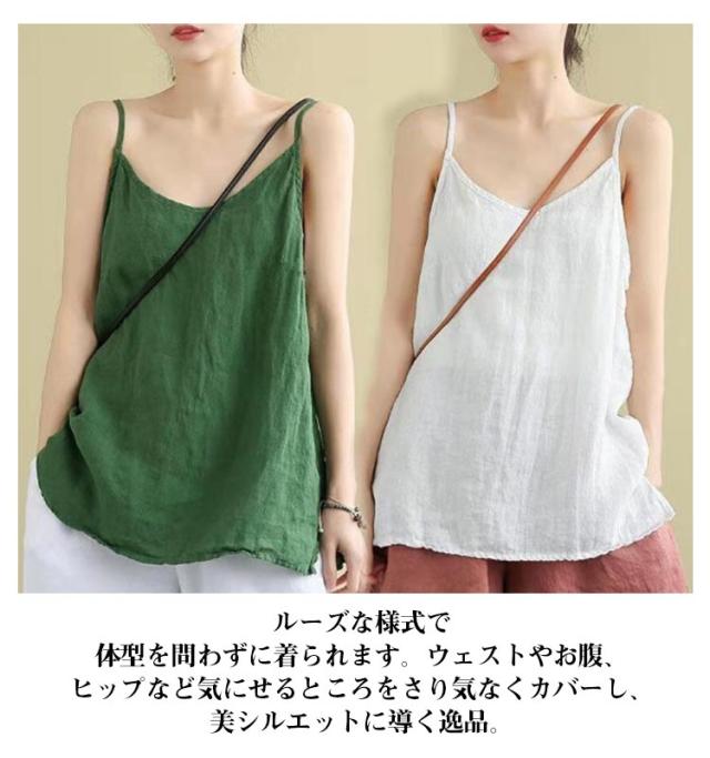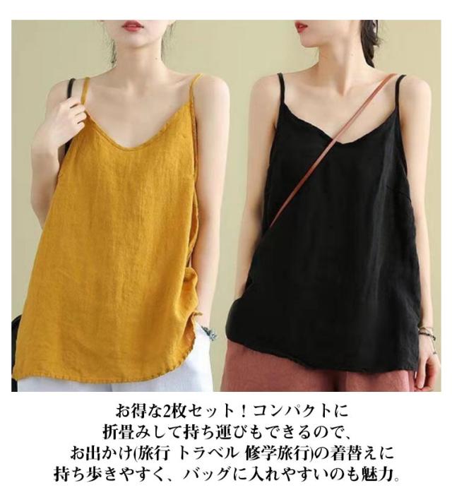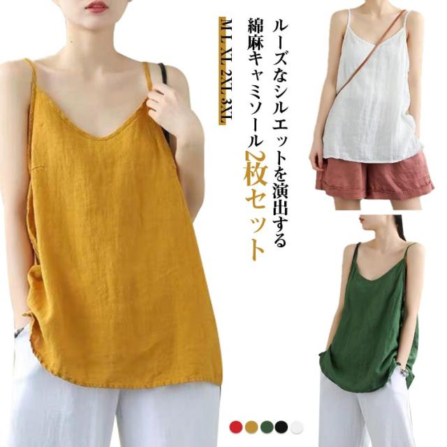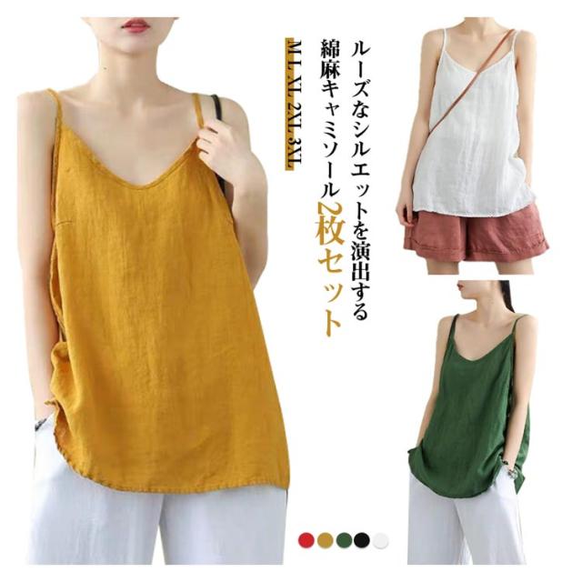 ナチュラル キャミソール 2枚セット レディース レイヤード 綿麻 リネンキャミソール インナー タンクトップ さらさら インナー トップス 肌着 リラックス ゆったり 体型カバー 吸湿 通気性 快適 下着 涼しい 送料無料