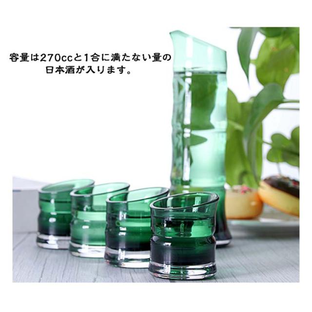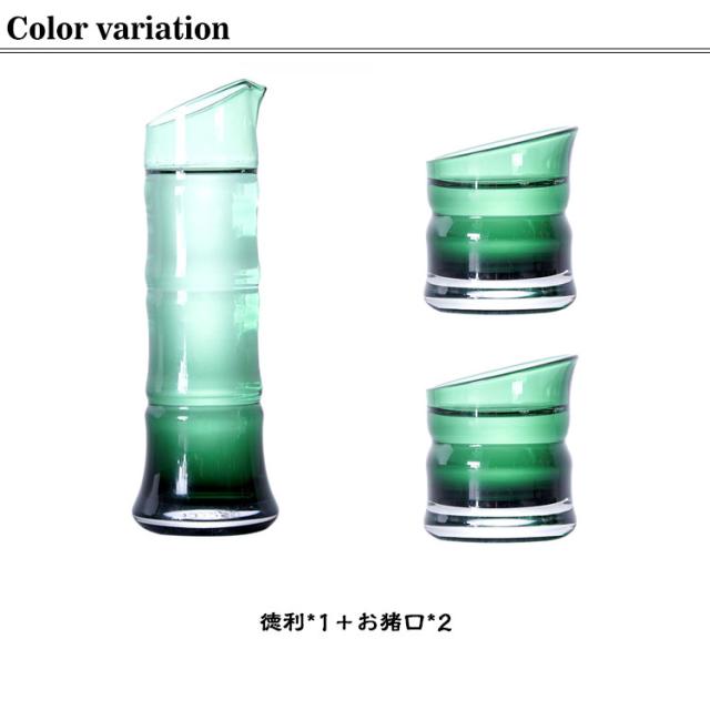 徳利 ガラス セット プレゼント 竹モチーフ お猪口 おちょこセット おしゃれ おちょこ ぐい呑み とっくり かわいい 竹形 和風 和式 酒器 敬老の日 和酒 梅酒 焼酎 盃 冷酒 日本酒 父の日 ギフト 父の日 緑 グリーン 3点セット セットアップ 送料無料