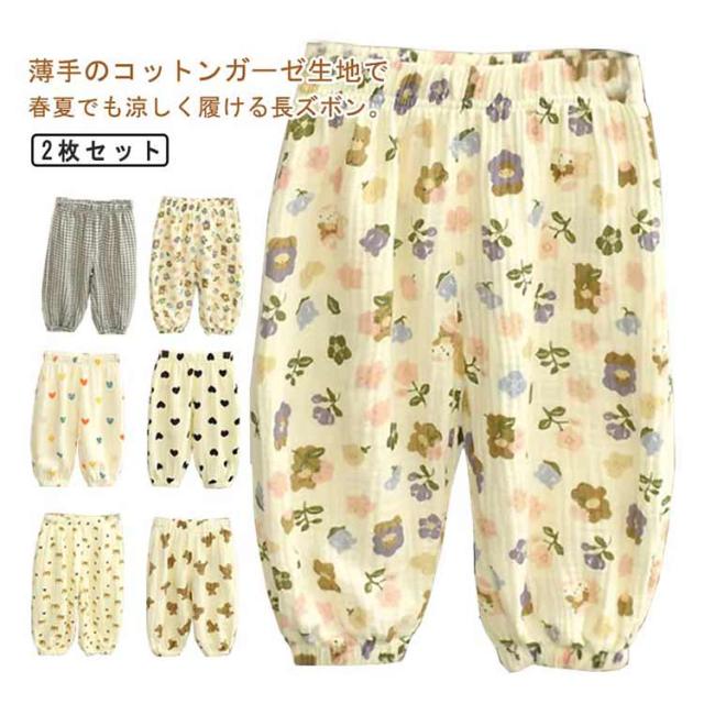 2枚セット キッズ ロングパンツ 虫よけ 子供服 長ズボン ベビー 薄手 涼しい 冷感 春夏用 防蚊 女の子 男の子 ボトムス 裾ゴム 日除け カジュアル スウェットパンツ 保育服 ハート 花柄 可愛い 出産祝い 普段着 通園 通学 ルームウェア 虫刺され防止