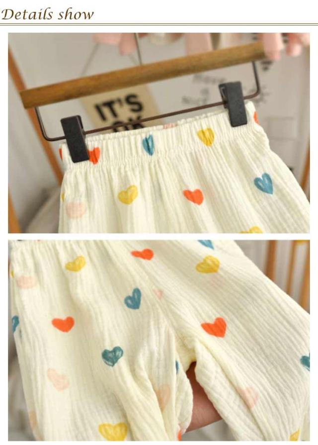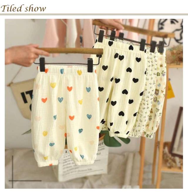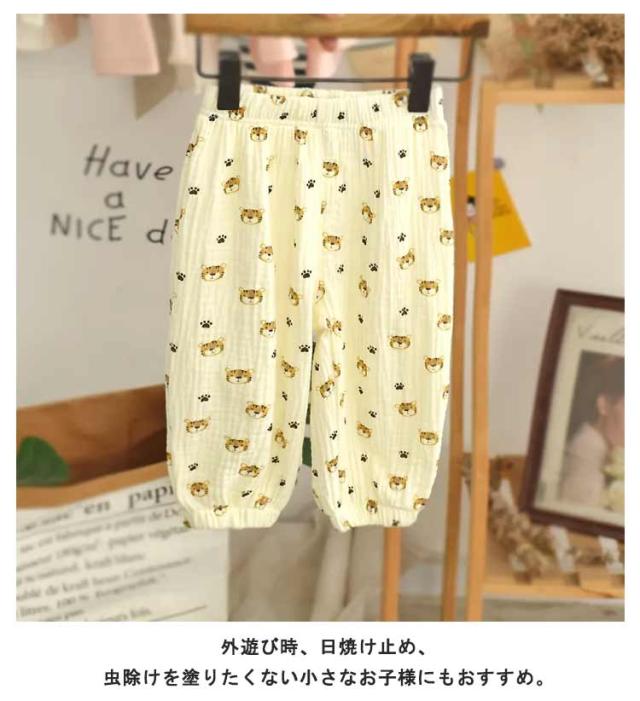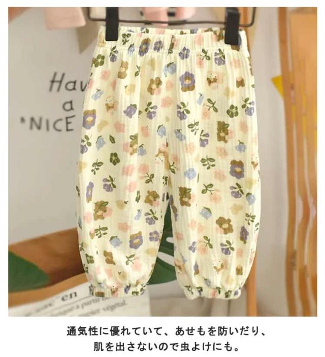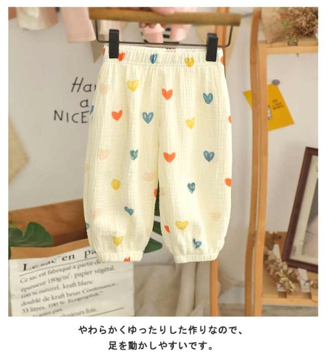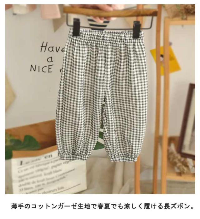 | 薄手のコットンガーゼ生地で春夏でも涼しく履ける長ズボン。 通気性に優れていて、あせもを防いだり、肌を出さないので虫よけにも。 部屋着や寝間着、ちょっとしたお出かけにも可愛く着られるデザインを集めました。 やわらかくゆったりした作りなので、足を動かしやすいです。 また裾にゴムが入っているので、大きめでも裾がずることなく、家具や遊具などに引っかける心配が少ないのも嬉しい♪ 外遊び時、日焼け止め、虫除けを塗りたくない小さなお子様にもおすすめ。 | |