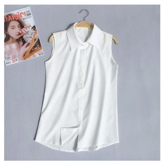 ノースリーブ Yシャツ ブラウス レディース シャツ 袖なし シンプル タンクトップ トップス 重ね着 レイヤード 襟付き シャツブラウス 白 黒 夏 薄手 スーツ インナー 就活 OL 通勤 白シャツ 大きいサイズ 無地 お洒落