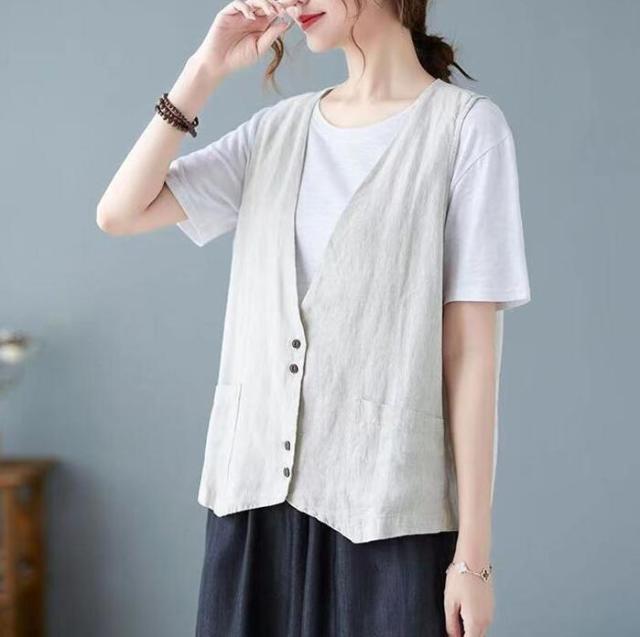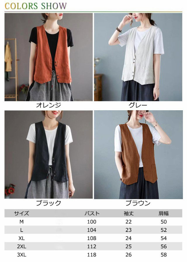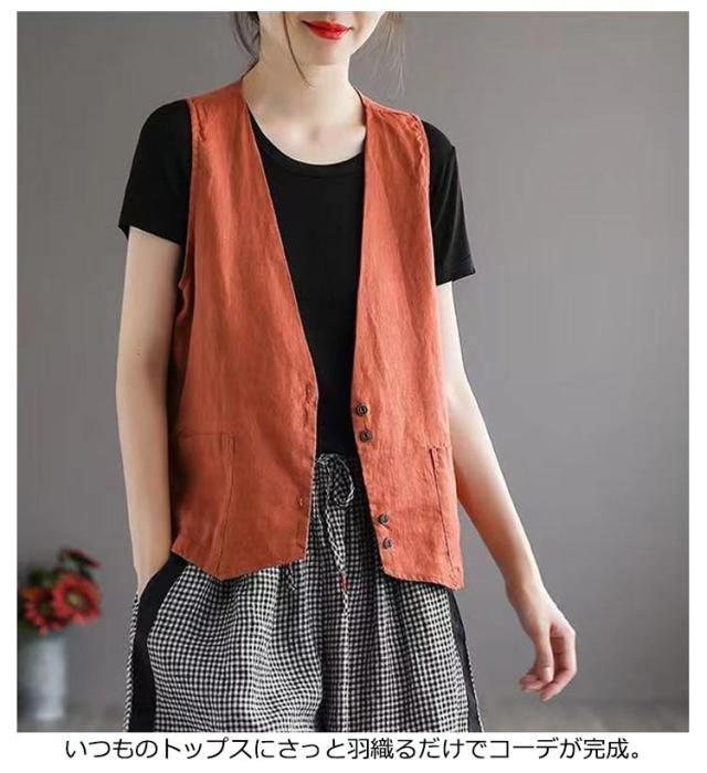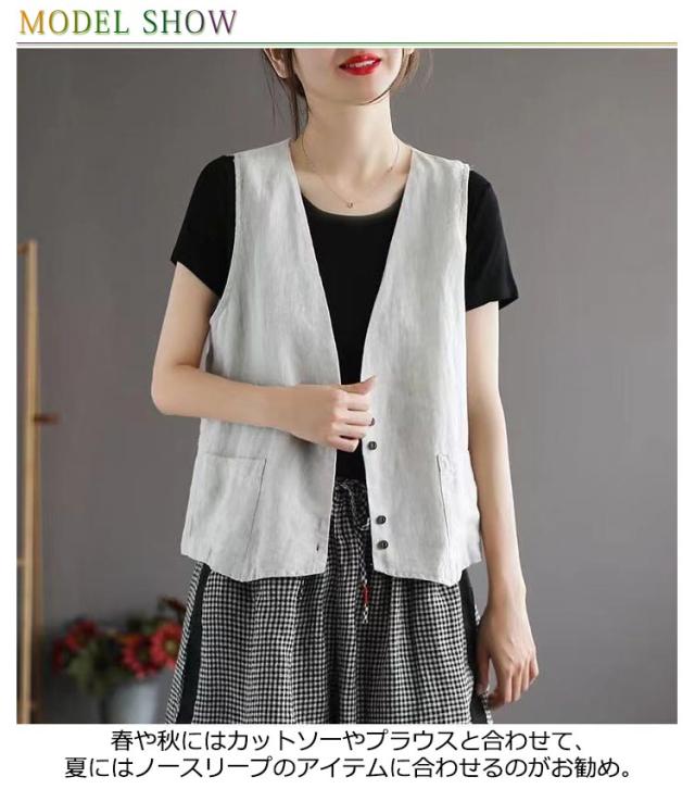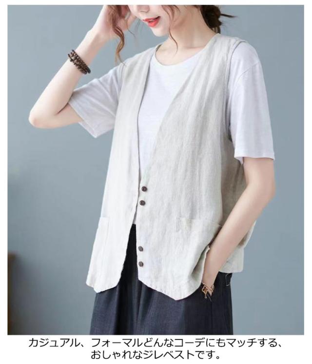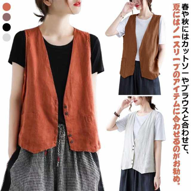 ジレ ベスト レディース 春夏 ベスト 薄手 おしゃれ 前開き トップス ゆったり 大きいサイズ ノースリーブ 羽織り オフィス カジュアル 重ね着 通勤 OL 30代 40代 50代