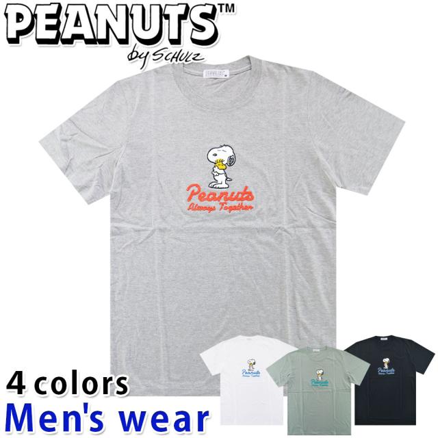 ★メール便送料無料★ スヌーピー 半袖 Tシャツ メンズ S1142-191 PEANUTS 犬 サガラ 刺繍 グッズ