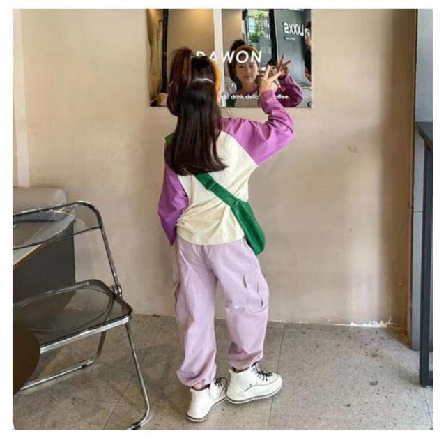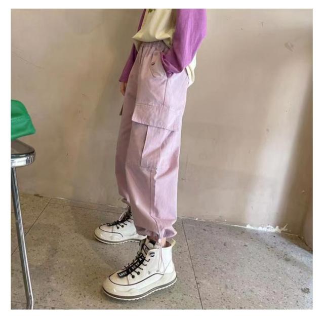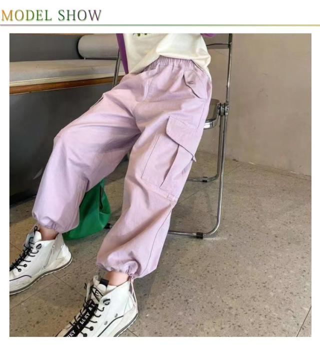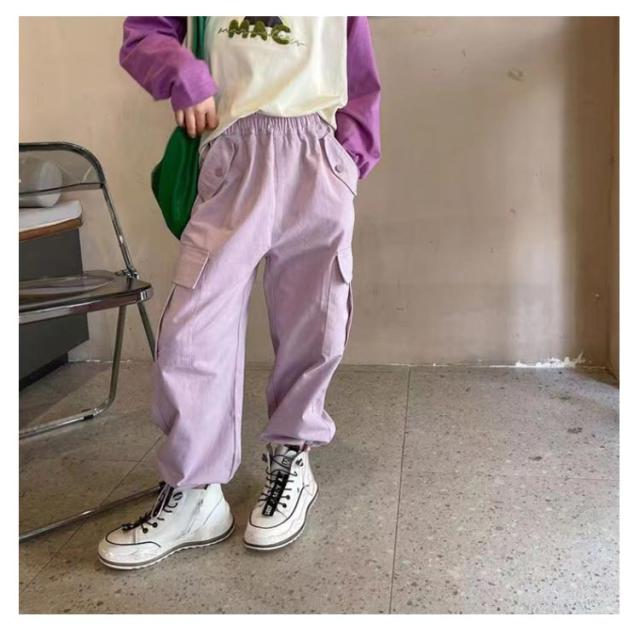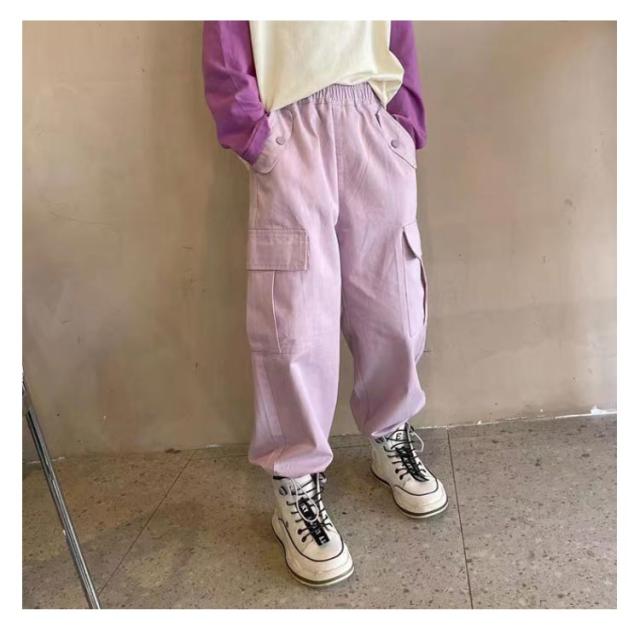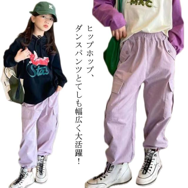 ガールズ 紫 ダンス 春 韓国 ヒップホップ パープル カジュアルパンツ パンツ 通学 160 夏 女の子 カーゴパンツ 衣装 120 パンツ 子供服 110 イージーパンツ 130 140 150