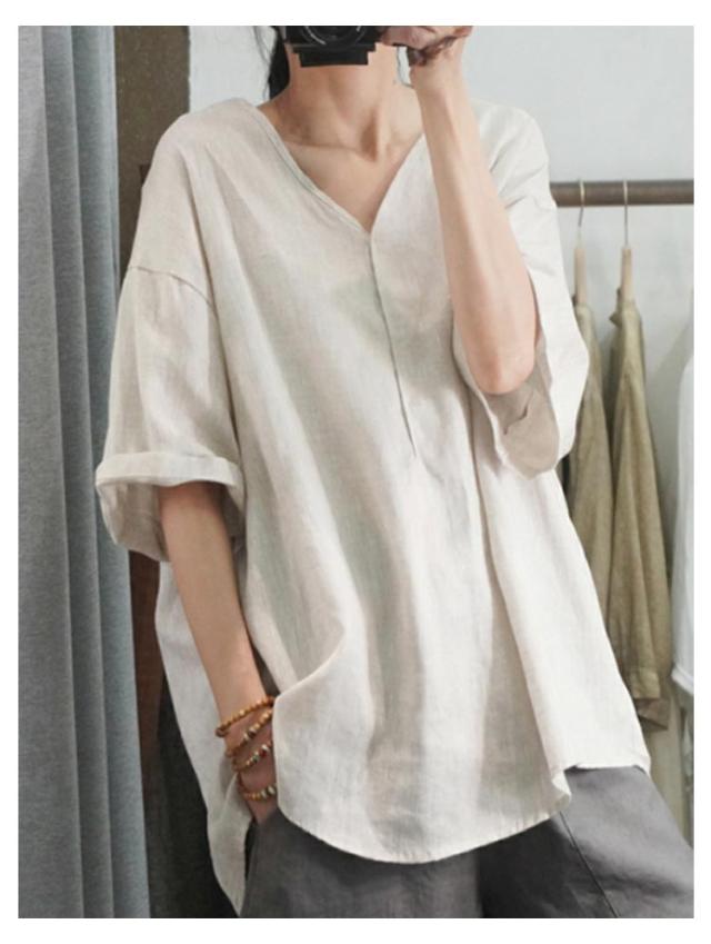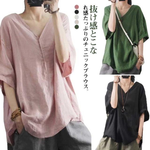 シャツ ブラウス 綿麻風 レディース 長袖 大きいサイズ ブラウス 春 チュニック ロングシャツ プルオーバー チュニック チュニック 薄手 ゆったり 体型カバー トップス シャツ おしゃれ ナチュラル 柔らか カジュアル 女性 夏 ファッション 無地
