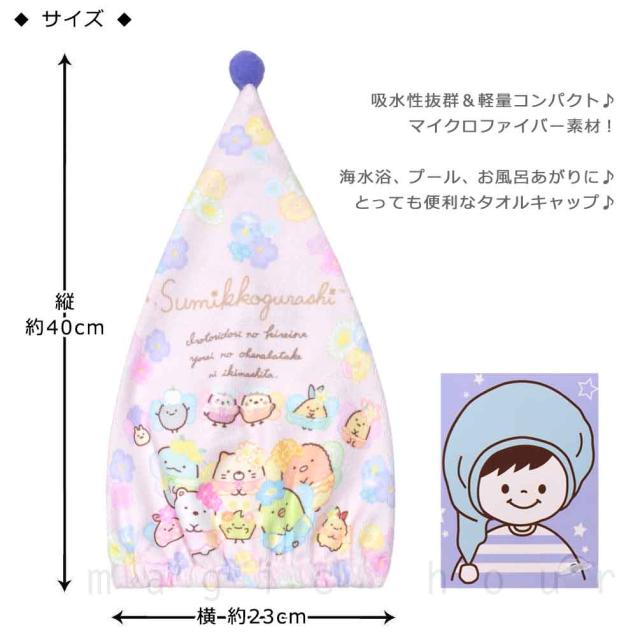 ◆ 送料無料 すみっコぐらし ざっそうとようせいのお花畑 人気 キャラクター キッズ ジュニア 子ども タオルキャップ プール スイミング帰りに 子供 タオル 帽子 ◆