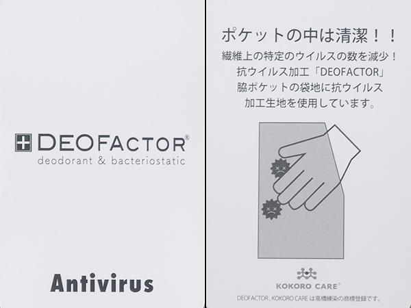 脇ポケット袋地:抗ウィルス生地使用
