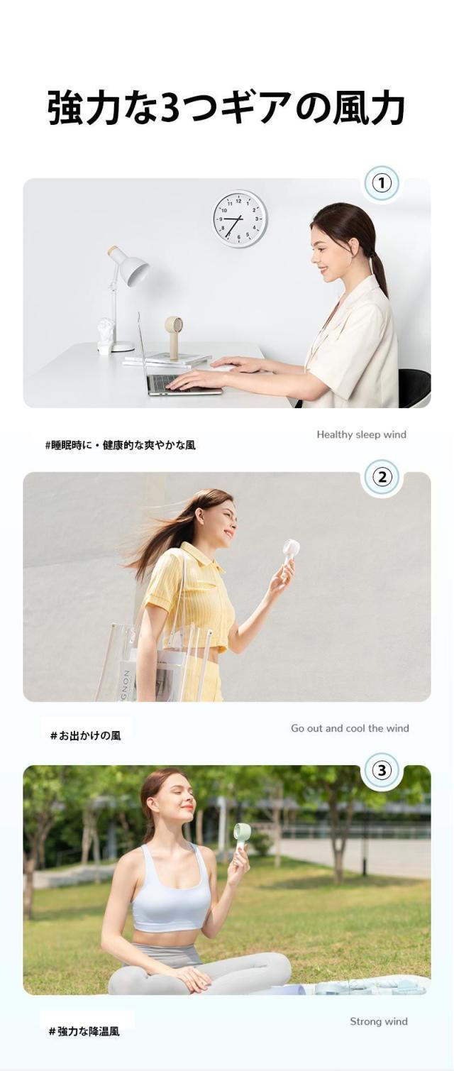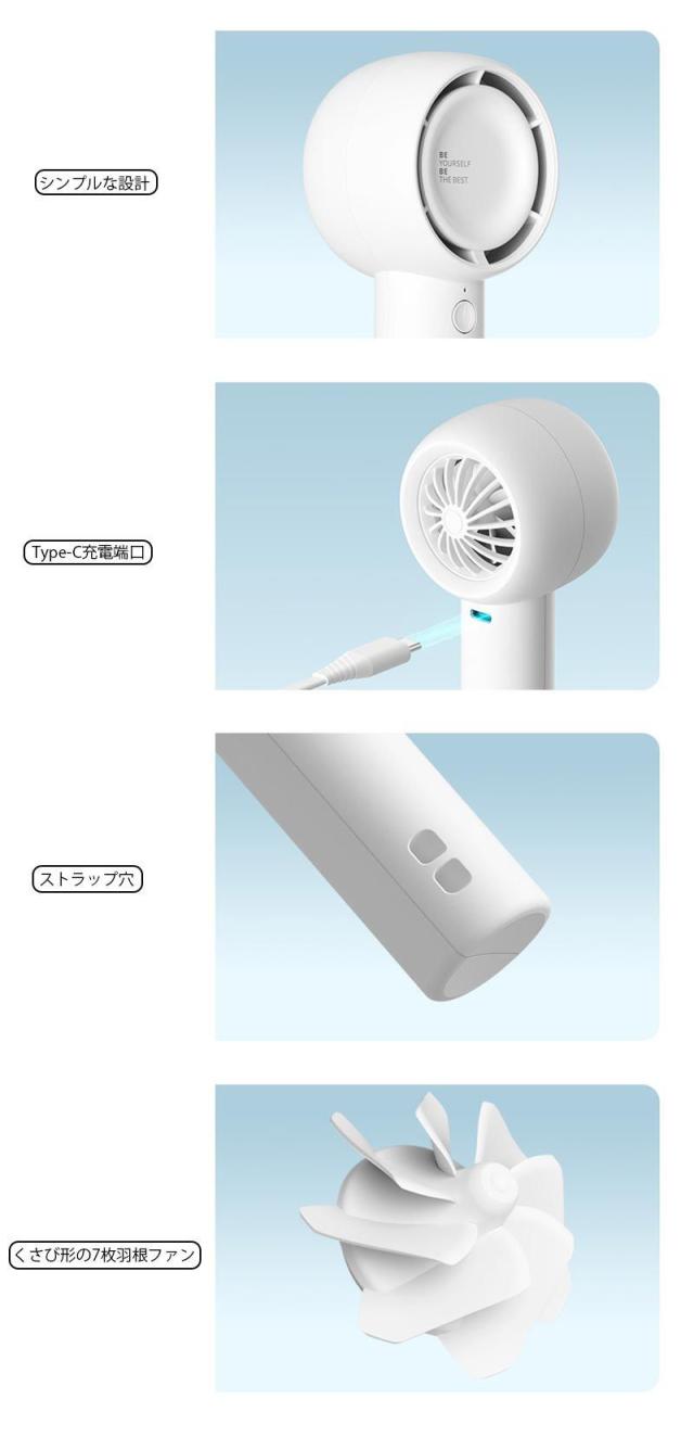ハンディ扇風機は4500回転のブラシレスモーターが革新的な技術を採用し、伝統的なモーターより、高い耐久性、低騒音の作動などの優れた機能を備えています。 このusb 扇風機、マカロンカラーでレトロでかわいいです。 見ているだけで恋に落ち、夏に彩りを添えます。ミニ携帯扇風機の為、片手でも使用出来ます。