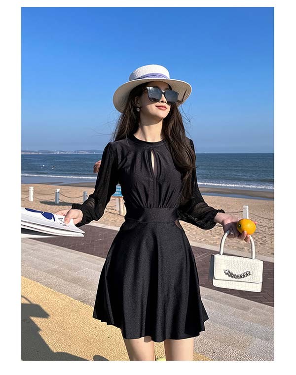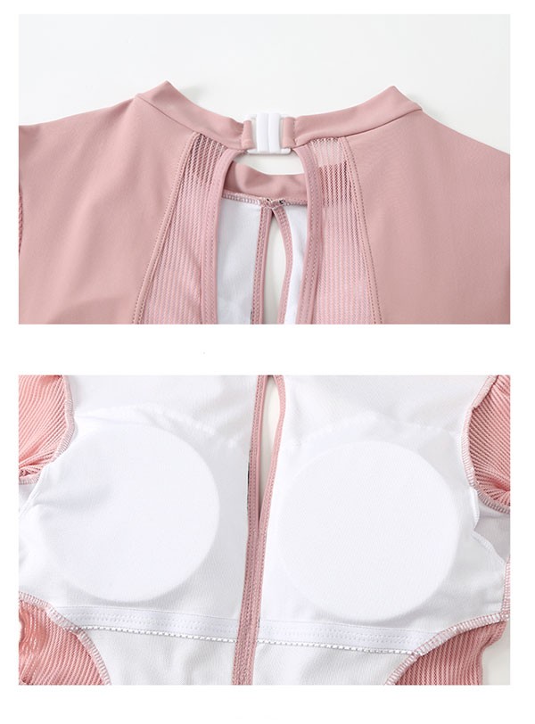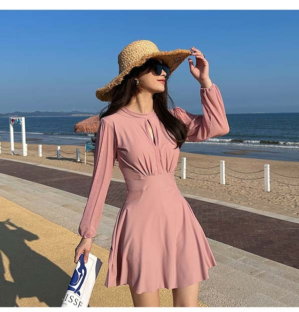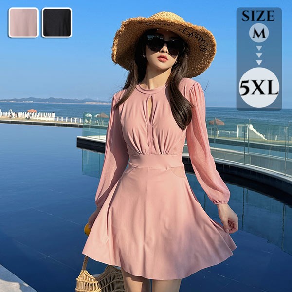 ワンピース 水着 背中開き ワンピース水着 レディース 体型カバー ぽっちゃり 大きいサイズ 長袖 UVカット フェミニン かわいい ショートパンツ 着痩せ パッド付 ビーチ 海デート 韓国風 女性用 大人 df028m3m3jc