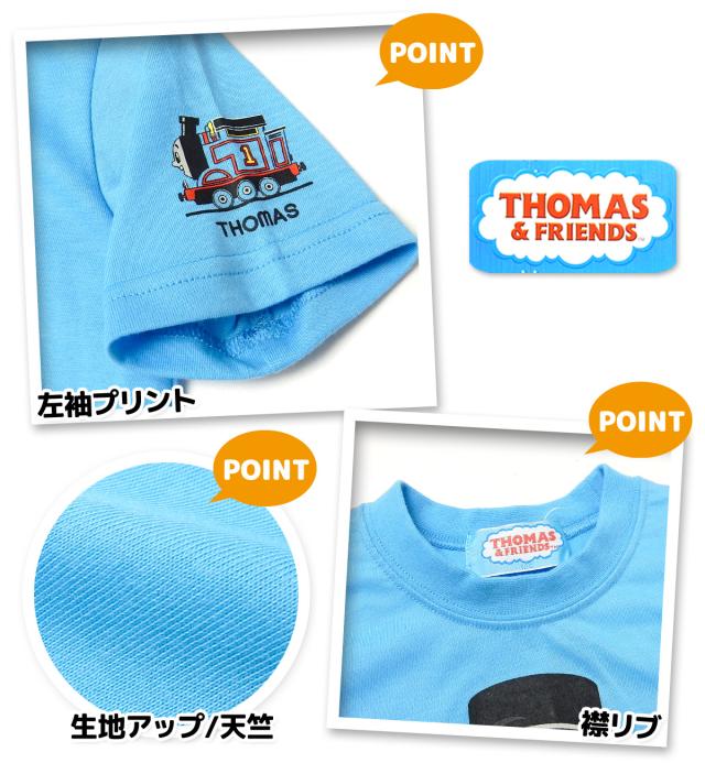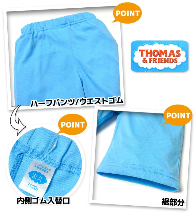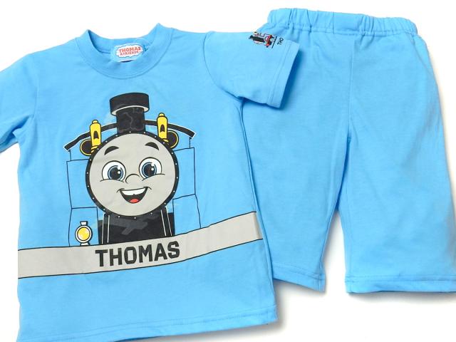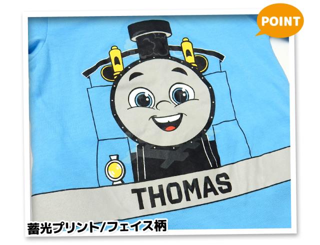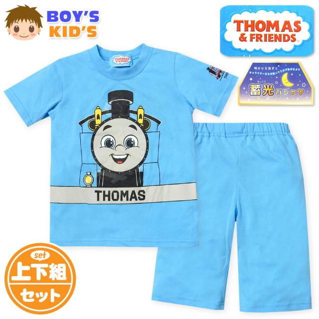 【送料無料】男児 キッズ 天竺 半袖 光るパジャマ きかんしゃトーマス ハーフパンツ 上下組 蓄光 フェイスプリント 子供服 男の子 100cm 110cm 120cm 130cm td-0794【メール便対応】