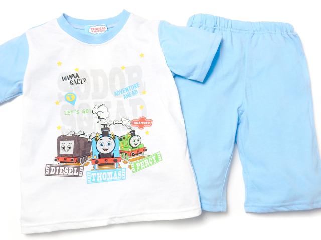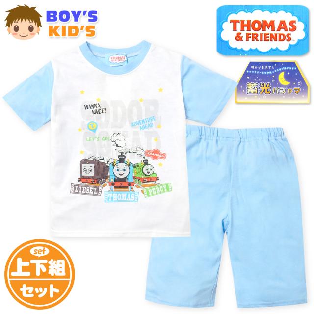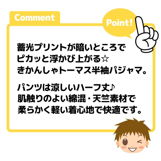 【送料無料】男児 キッズ 天竺 半袖 光るパジャマ きかんしゃトーマス ハーフパンツ 上下組 蓄光 子供服 男の子 100cm 110cm 120cm 130cm td-0803【メール便対応】