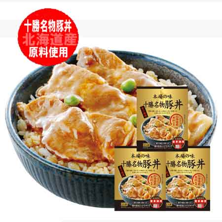 自信を持って開発した常温保存品の炭火焼風の北海道十勝名物豚丼です。