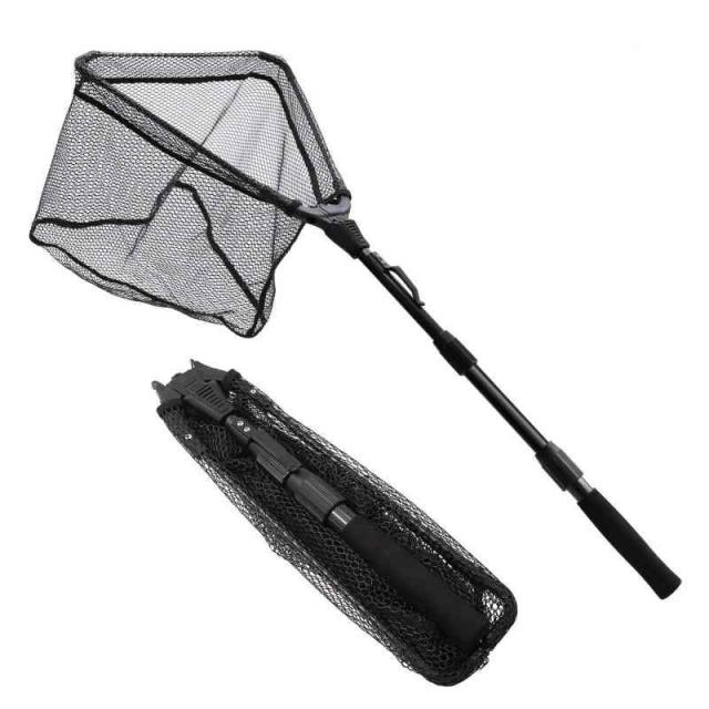 サンライク(SANLIKE)玉網 タモ網 折り畳み式 ワンタッチネット 伸縮式 3段階 調節可能 釣りネット すくい網 ランディングネット 軽量 ラバーコーティングネット ガラス繊維の柄 淡水海水適用 釣り たも網 コンパクト 網 漁具 110CM/180CM/250CM (ブラック/S/伸縮タイプ, 全長110CM)