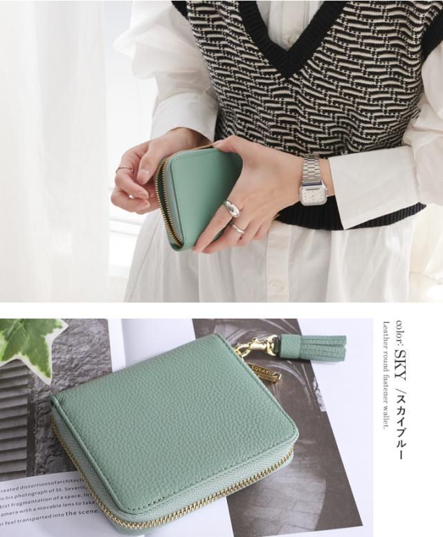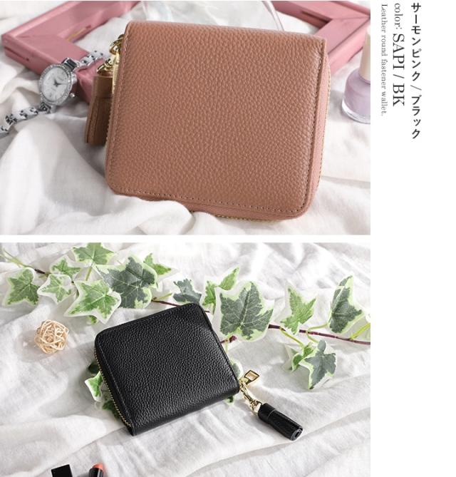 【LIZDAYS】スキミング防止 ラウンド 本革 2つ折り財布