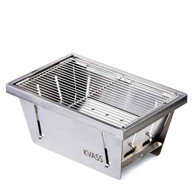 KVASS バーベキューコンロ コンパクト 焚き火台 キャンプ用品 卓上コンロ 折りたたみコンロ ミニバーベキューコンロ BBQグリル 1台3役 ステンレス鋼 (L型)