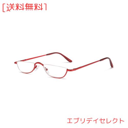 ◆商品名:[REAVEE] 老眼鏡 ハーフフレーム 半月型 メタル 薄型 軽量 男女兼用 おしゃれ ケース付き 度数 「+3.5」 レッド