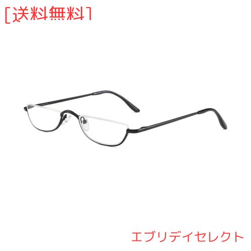 ◆商品名:[REAVEE] 老眼鏡 ハーフフレーム 半月型 メタル 薄型 軽量 男女兼用 おしゃれ ケース付き 度数 「+3.5」 ガンブラック