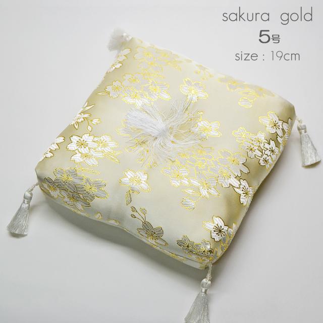 リン座布団1枚 5.0号 幅19cm 厚さ4.5cm 本手打りん 5.0寸用 金襴桜模様 ベージュ ゴールド 仏具 035
