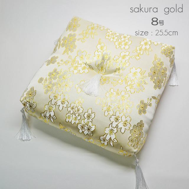 リン座布団1枚 8.0号 幅25.5cm 厚さ5.5cm 本手打りん 7.0寸用 金襴桜模様 ベージュ ゴールド 仏具 038