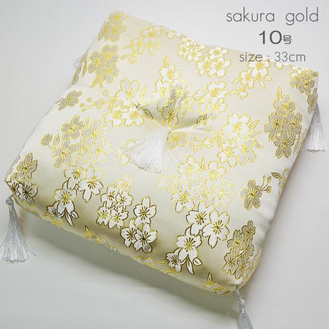 リン座布団1枚 10.0号 幅33cm 厚さ6.5cm 本手打りん 9.0寸用 尺用 金襴桜模様 ベージュ ゴールド 仏具 040
