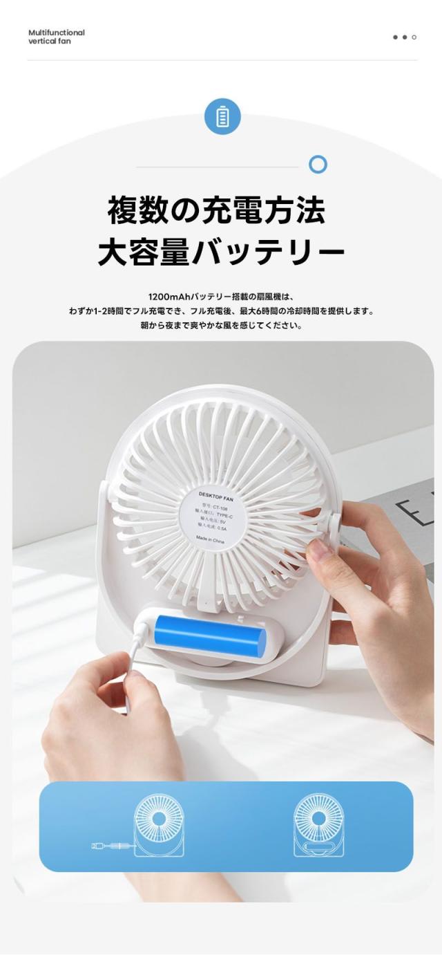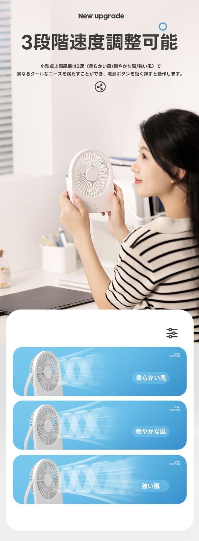 扇風機 dcモーター 卓上扇風機 USB扇風機 壁掛け扇風機 USB充電式 卓上小型 オフィスファン ハンドル調節 手持ち 壁掛け 吊り下げ 扇風機 超軽量 広角送風 静音 1200mAh 超強風 軽量 省エネ 熱中症対策 オフィス、寝室、屋外での使用に最適 携帯多用途