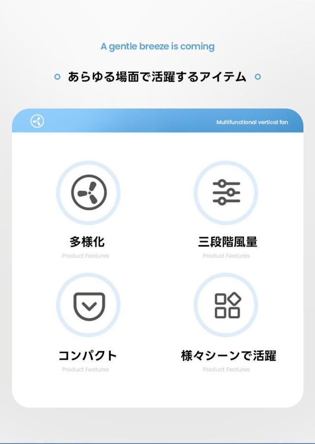 ワンタッチ操作!3段階調整モード、風量は弱、中、強、自然風速の切り替えが可能で、使用シーンや気温に合わせてお好みの風力を自由に調整でき、快適な夏環境をお楽しみいただけます。