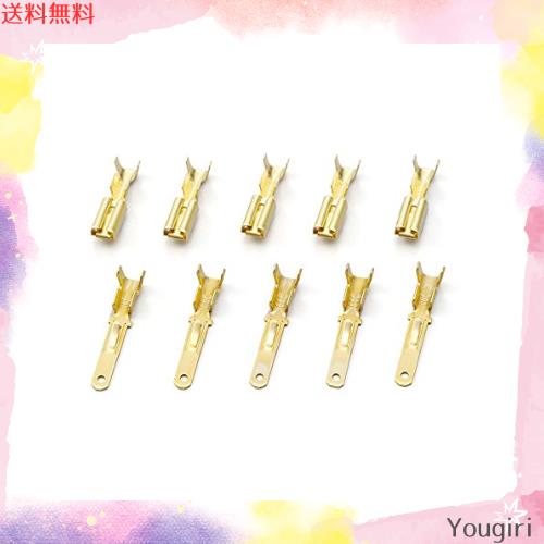 コネクター用平型端子のオス、メスのセット。材質:黄銅。表面処理:防錆処理。適合電線サイズ:AVまたはAVS0.5〜2.0。