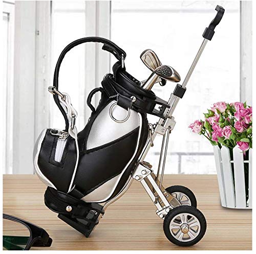 ゴルフペン ペン立て3本のペン ゴルフ景品 ゴルフ記念品 ゴルフギフト 卓上スタンド ミニ PUゴルフバッグ付き (黒+銀)