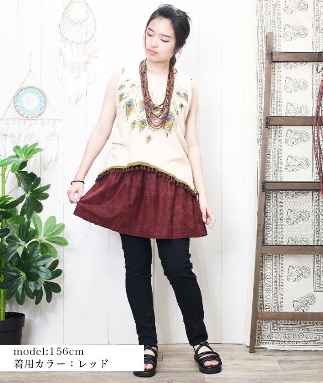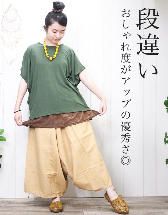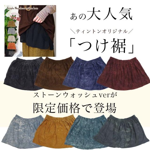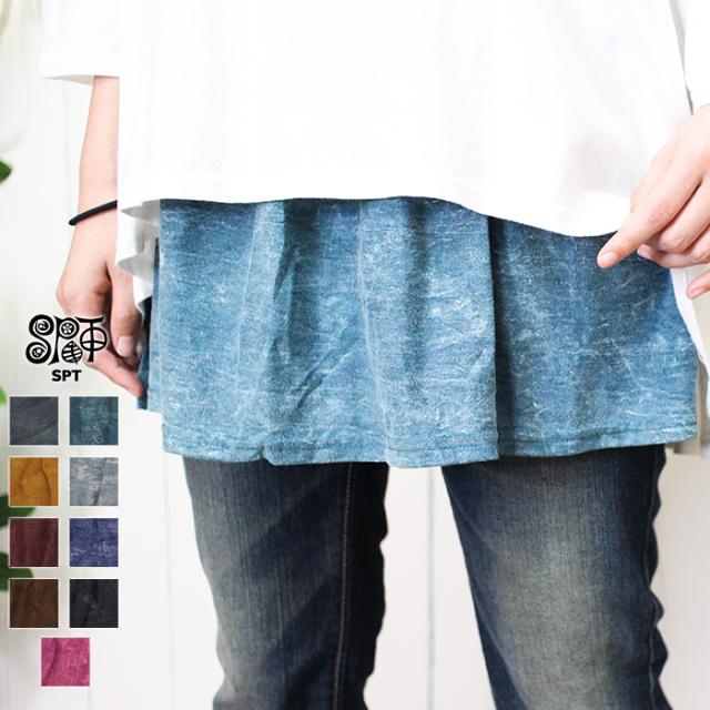付け裾 付けすそ レイヤード エスニック アジアンファッション フェイクシャツ レディース 【SPT】ストーンウォッシュ 体型カバー 重ね着風 ウエストゴム スカート 2025年春夏