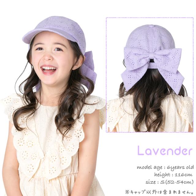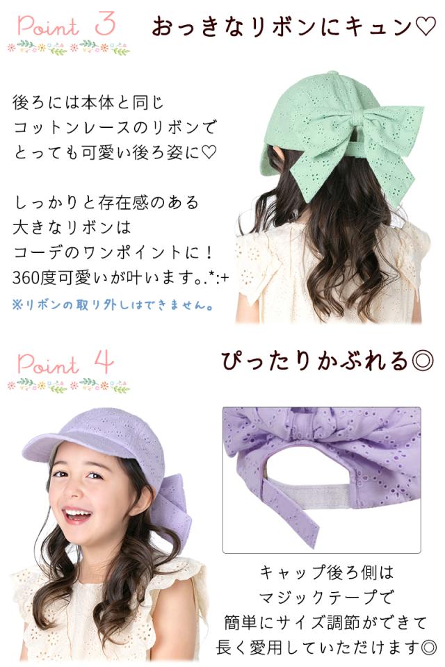 キッズ 帽子 女の子 UV レース キャップ リボン バックリボン 日よけ 可愛い 紫外線カット ナチュラル 《レビュー記入でメール便無料》 コットン 綿 おしゃれ 子供服 幼稚園 小学生 中学生 54 56 100 110 120 130 140 150 160 : bianca barca ビアンカ バルカ 送料無料