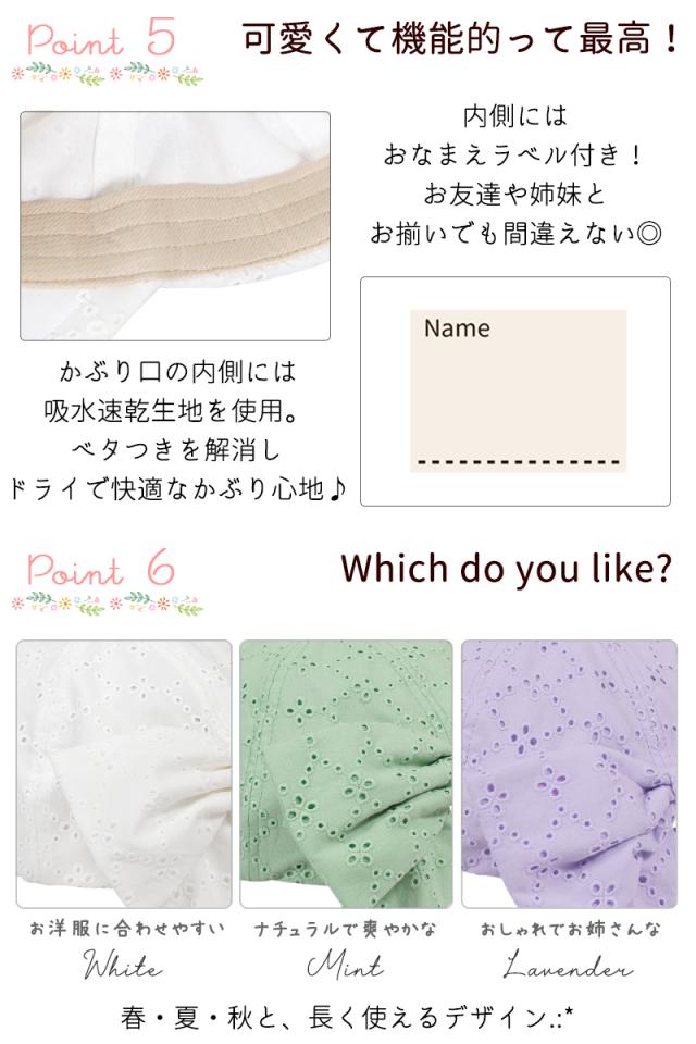商品カテゴリ : 子ども 女の子 キッズ 子供 帽子 キャップ レース ハット UV 幼稚園 小学生 中学生 90cm 100cm 110cm 120cm 130cm 140cm 可愛い お洒落