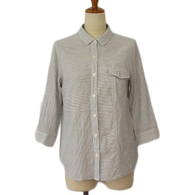 【中古】ゴールデンベア GOLDEN BEAR シャツ ボーダー ストライプ 七分袖 コットン L グレー レディース