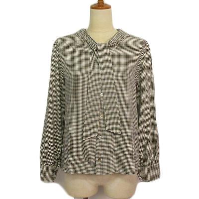 【中古】テチチ Te chichi シャツ ブラウス チェック ボウタイ フリー 紺 ネイビー 茶 ブラウン レディース