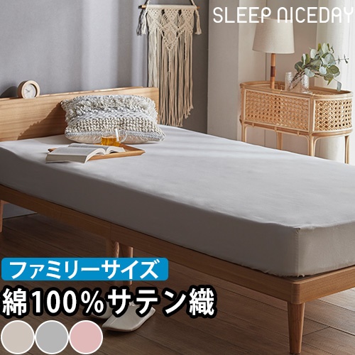 ベッドシーツ ベッドカバー マットレスカバー マットレスシーツ おしゃれ 快適 ファミリーサイズ 可愛い おしゃれ ボックス 洗濯 かわいい スリープナイスデイ 綿100% 超長綿 80サテン織ボックスシーツ240cm Sleep Niceday fitted sheet