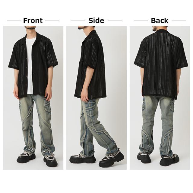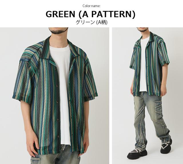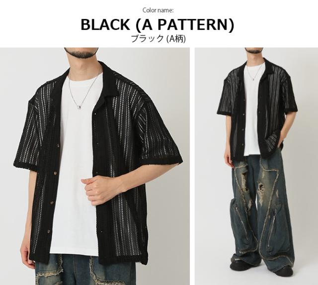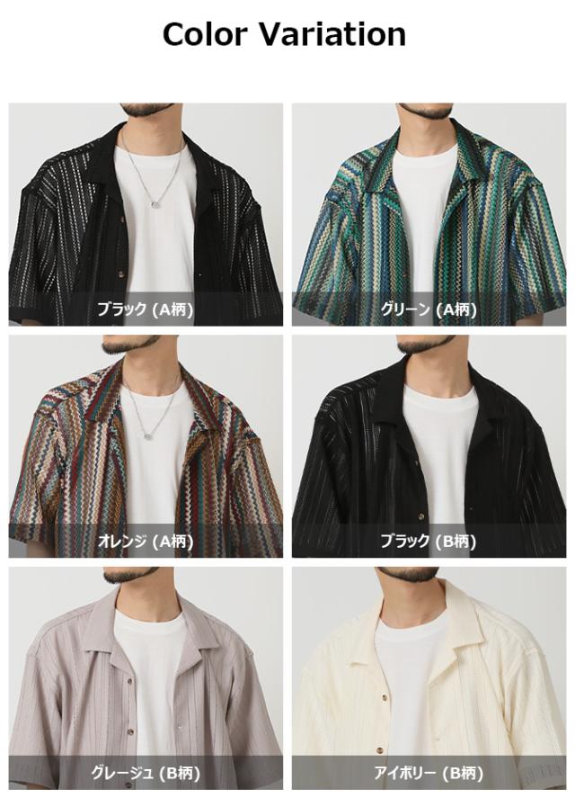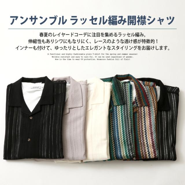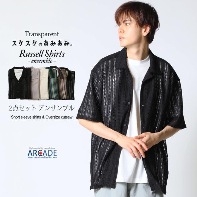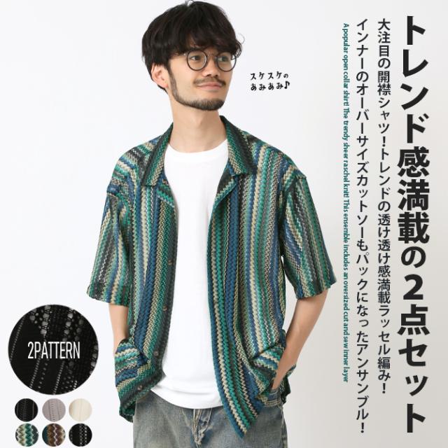 アンサンブル 2点セット メンズ 新作 半袖シャツ ラッセル編み 開襟シャツ オープンカラーシャツ 夏シャツ シアーシャツ メンズファッション トップス