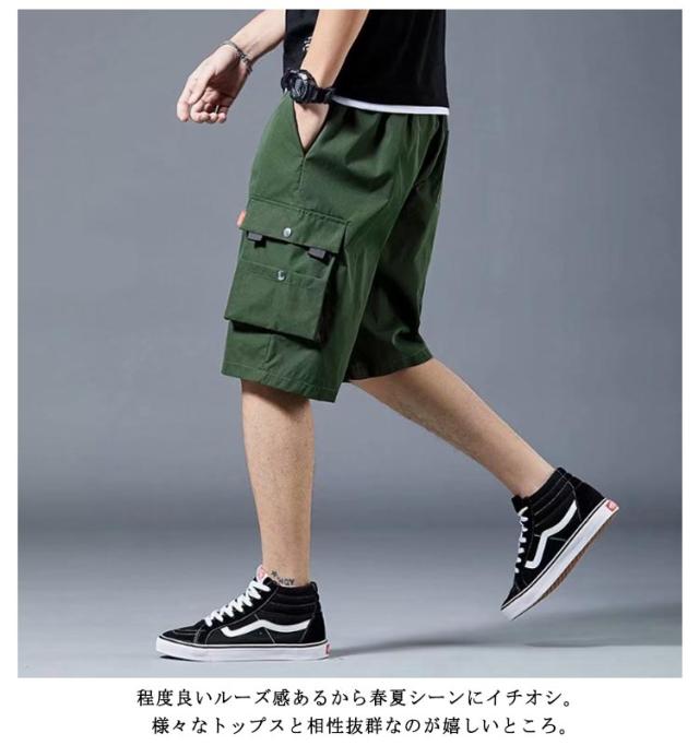 カーゴパンツ 薄手 ミリタリーパンツ ショートパンツ ボトムス 無地 メンズ 五分丈 かっこいい ハーフ丈 短パン 夏用 ハーフパンツ ワイドパンツ 多ポケット カーゴパンツ 半ズボン 通気性 ゆったり 大きいサイズ カジュアル アウトドア ゴルフウェア 送料無料