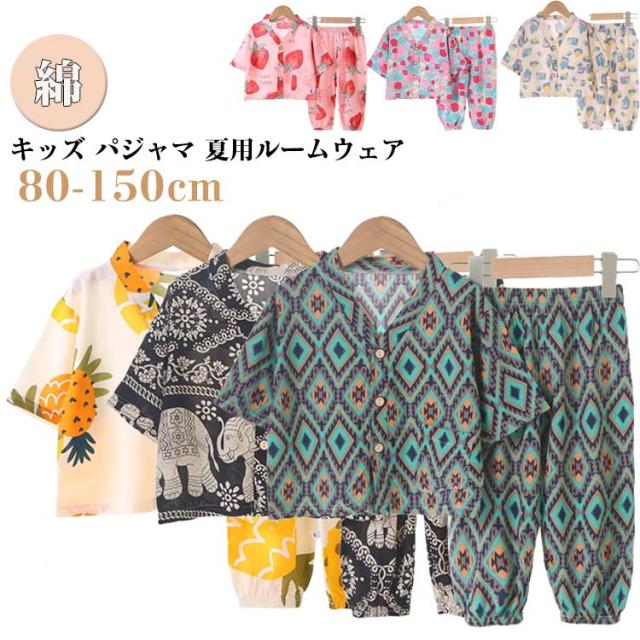 | キッズ パジャマ 夏用ルームウェア 80-150cm サラリと薄手で軽い着心地、優れた通気性で寝苦しさも解消 パンツはウエスト総ゴムで着脱がラク | |