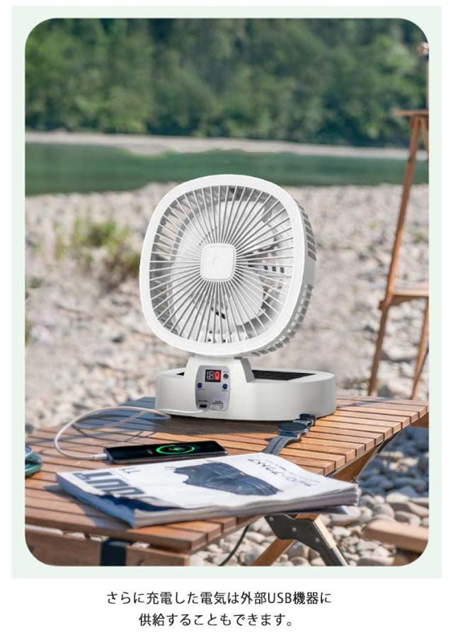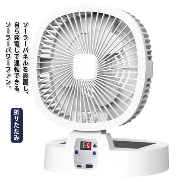 | ソーラーパネルを設置し、自ら発電して運転できるソーラーパワーファン。 発電した電気は内臓バッテリーに充電されるので、電源がない場所や停電時でも運転可能。 さらに充電した電気は外部USB機器に供給することもできます。 LEDライトを搭載して、暗闇の中ランタン代わりに使える多機能扇風機です。 折りたためるのでコンパクトに収納できます。 室内だけでなく、キャンプなどアウトドアでもご使用いただけます。 | |