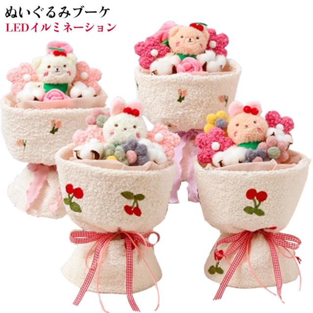 ぬいぐるみブーケ 花束 ぬいぐるみ花束 手提げ袋付 誕生日プレゼント プレゼント ギフト 可愛い 友達 花束 LEDイルミネーション 子供 記念日 お祝い 記念日 母の日 子供の日 結婚祝い