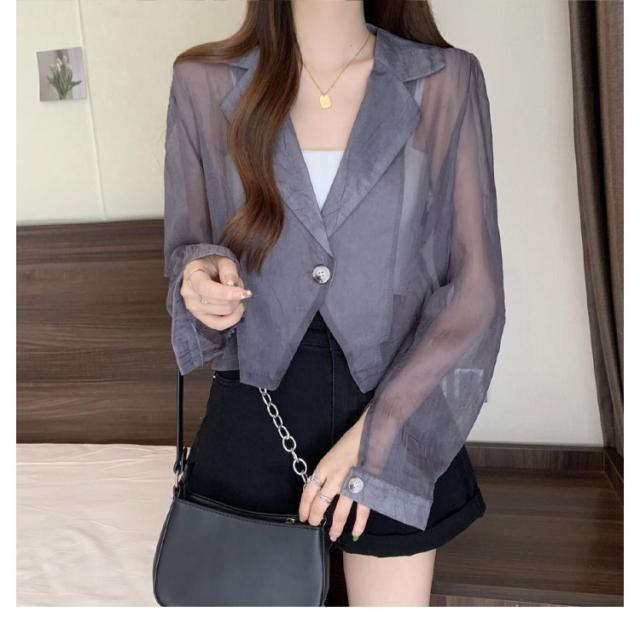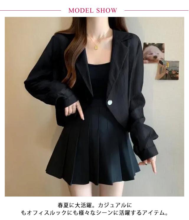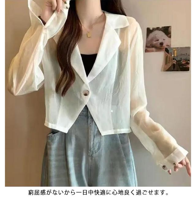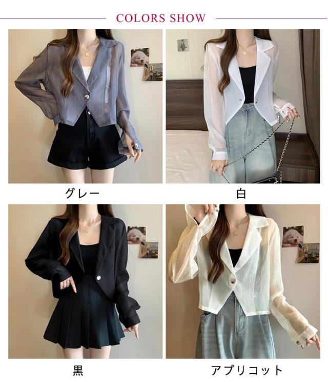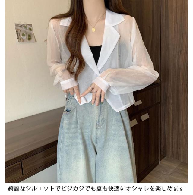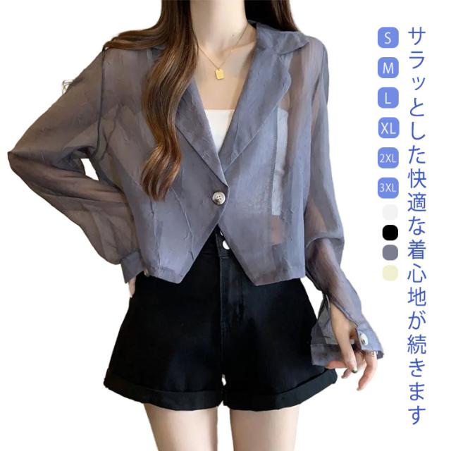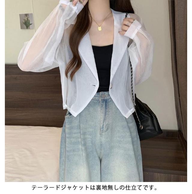 接触冷感 薄手 アウター ジャケット 通気性 レディース 羽織 サマージャケット 涼しい 春夏 ショート丈 サマースーツ 透け感 ライトアウター 長袖 カジュアルジャケット オフィス オフィスジャケット