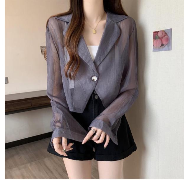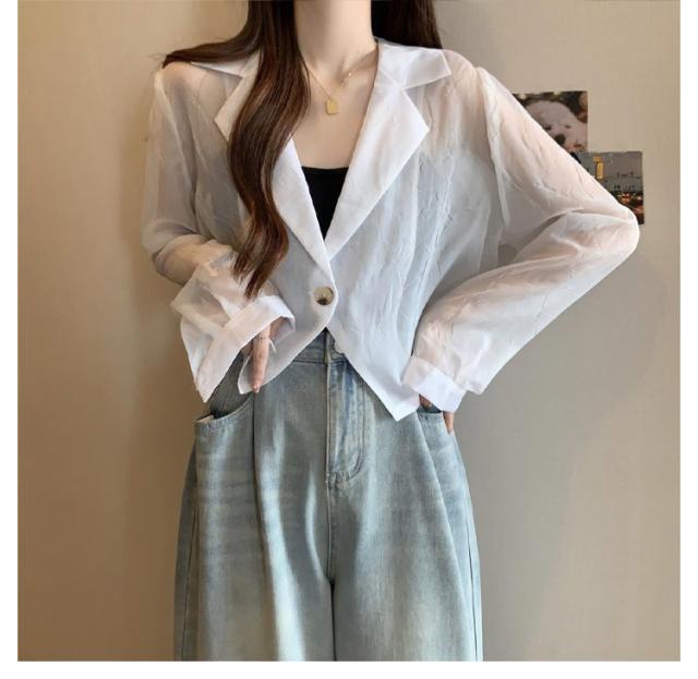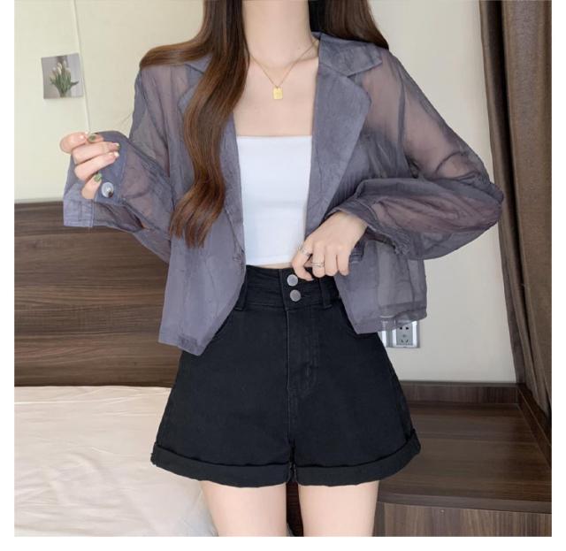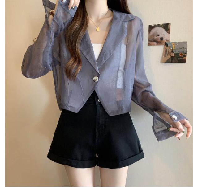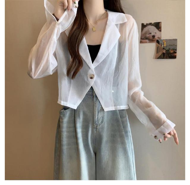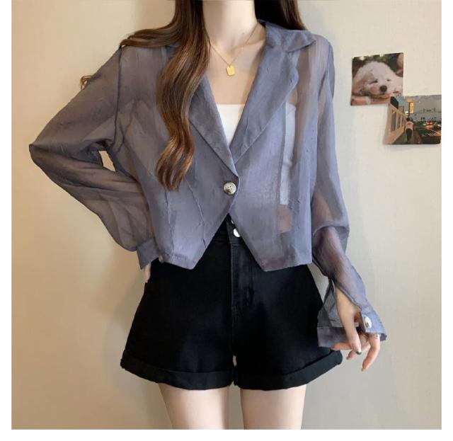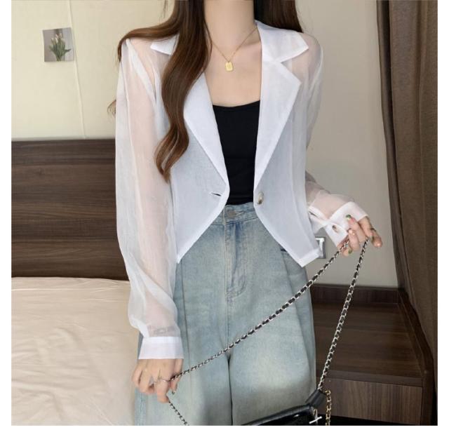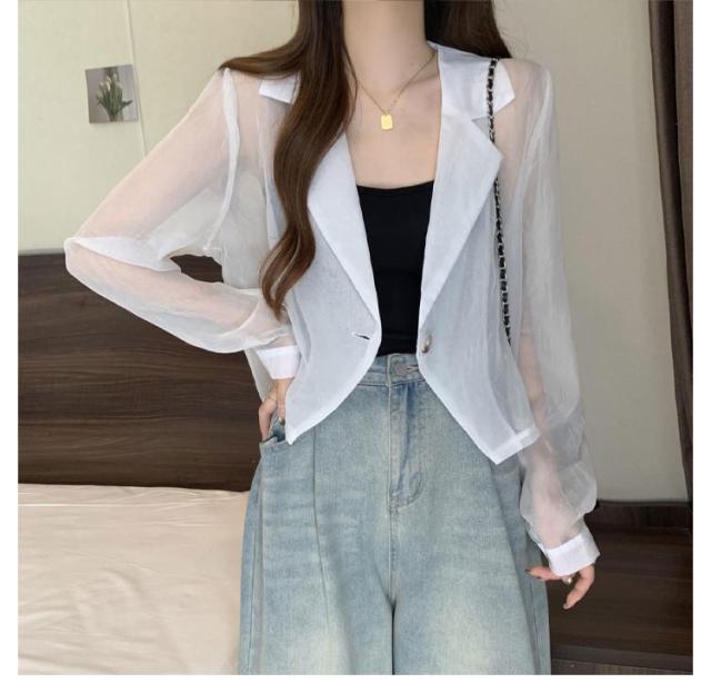 接触冷感 薄手 アウター ジャケット 通気性 レディース 羽織 サマージャケット 涼しい 春夏 ショート丈 サマースーツ 透け感 ライトアウター 長袖 カジュアルジャケット オフィス オフィスジャケット