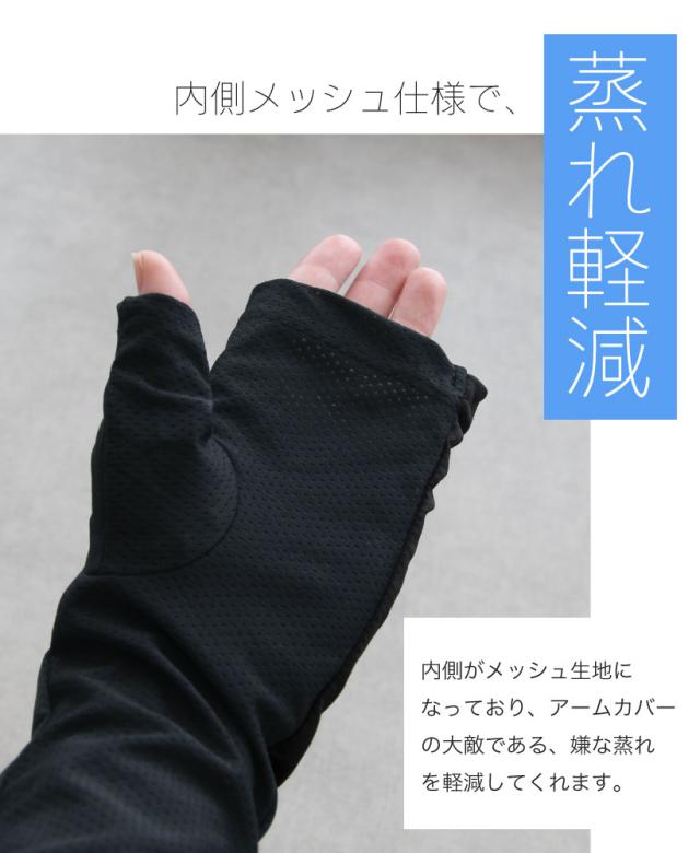 【メール便1枚のみ対応可能】キシリトール加工 UV&冷感手袋 メッシュアームカバー 接触冷感【60cm丈】ひんやり UV 紫外線防止 夏 シンプル ブラック【P】【Y】