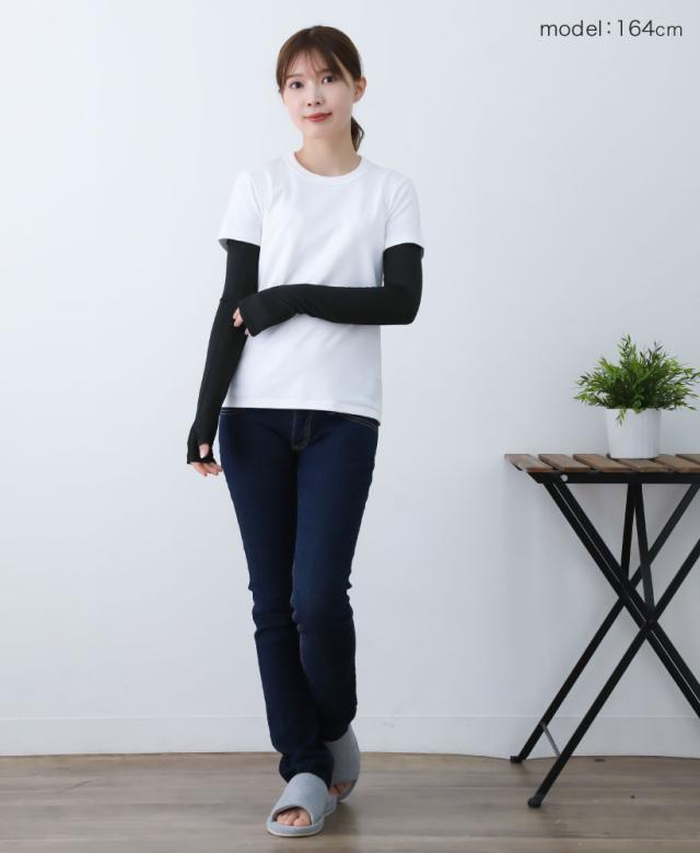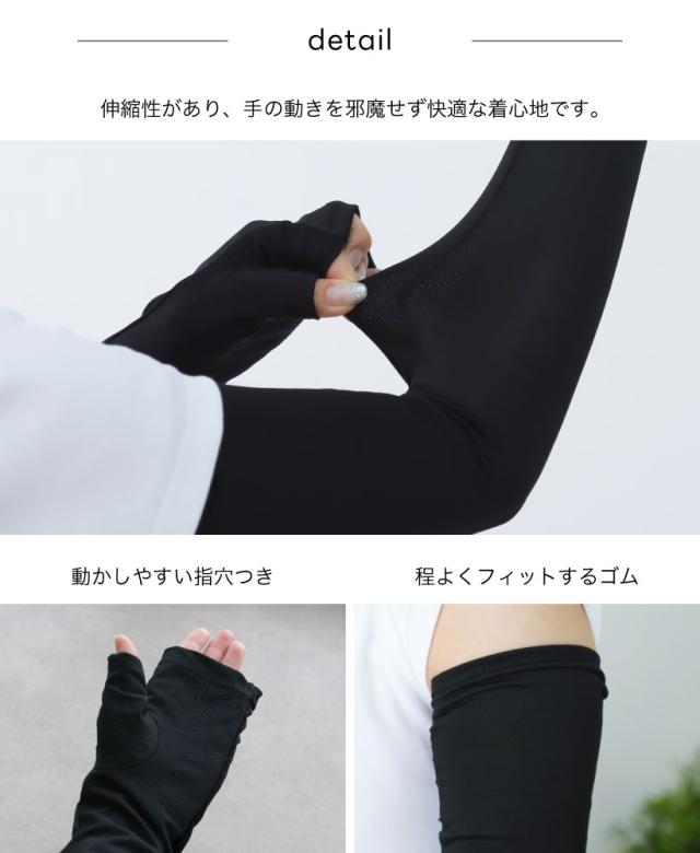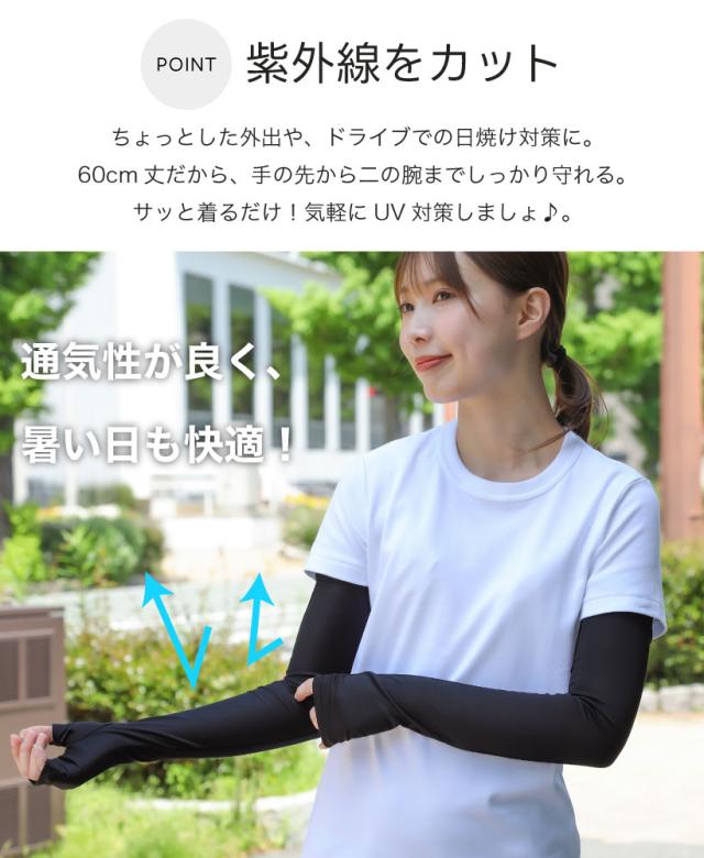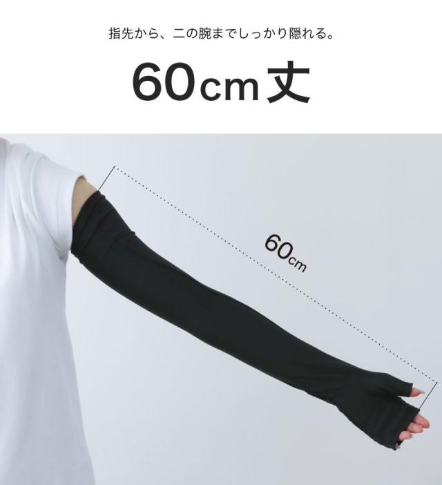内側メッシュで蒸れを軽減!生地にキシリトール加工を施しており、触れるとひんやり!さらっとした肌触りの接触冷感アームカバーです。シンプルな無地だから、お洋服にも合わせやすく使いやすい。60cmの肘上丈なので、半袖を着ていても手の甲から二の腕までしっかり守ってくれて安心です。