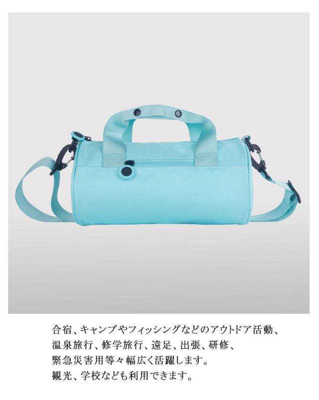 | 子供用ミニスポーツバッグ。シンプルで男女兼用デザインのボストンバッグ。 合宿、キャンプやフィッシングなどのアウトドア活動、温泉旅行、修学旅行、遠足、出張、研修、緊急災害用等々幅広く活躍します。観光、学校なども利用できます。 コンパクトなのに大容量。小物の収納に便利なポケット多数。 手持ち、ショルダーバッグとして2wayで使えます。 軽量、旅行やスポーツなどに最適のボストンバックです。 撥水加工でバッグの中のポケットも濡れたものを入れるスペースがあります。 | |