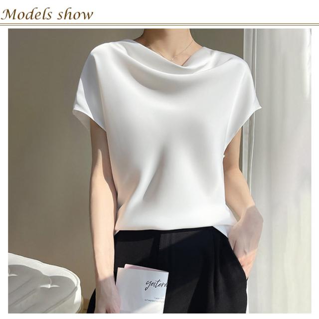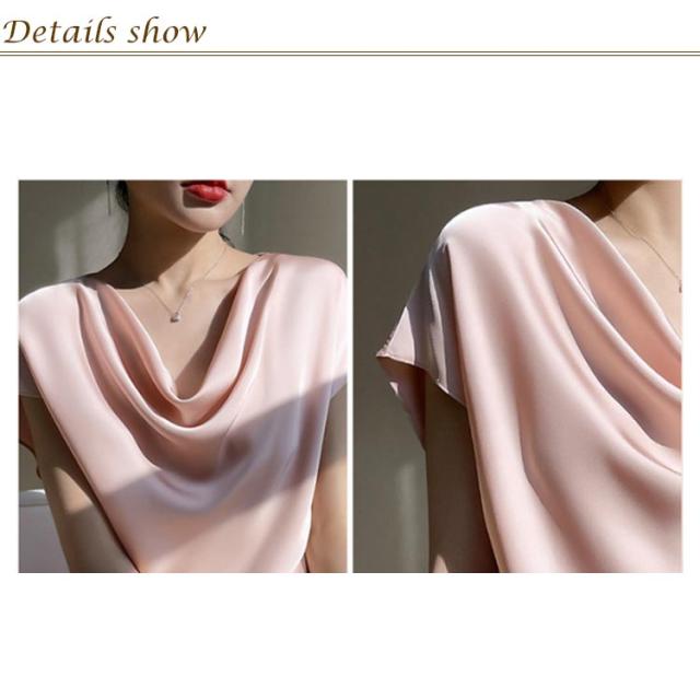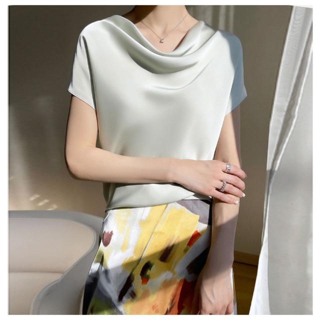 レディース シャツ tシャツ 半袖 ゆったり 薄手 サテン シャツブラウス 柔らか ブラウス トップス 大きいサイズ プルオーバー シャツ 体型カバー オフィス 通勤 インナー 体型カバー 上品 大人