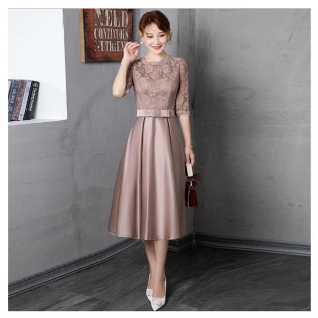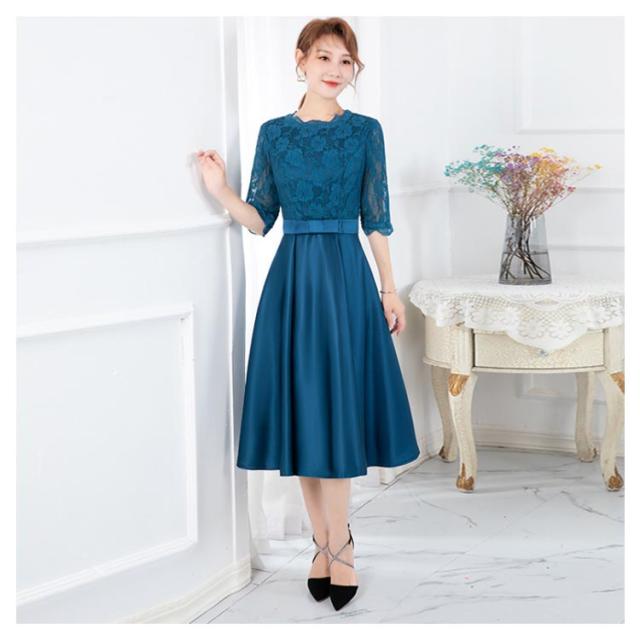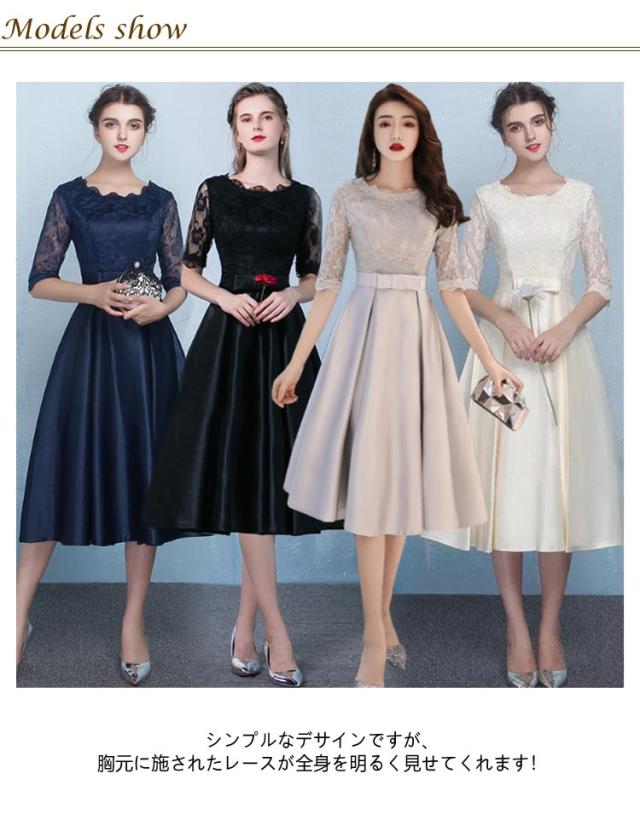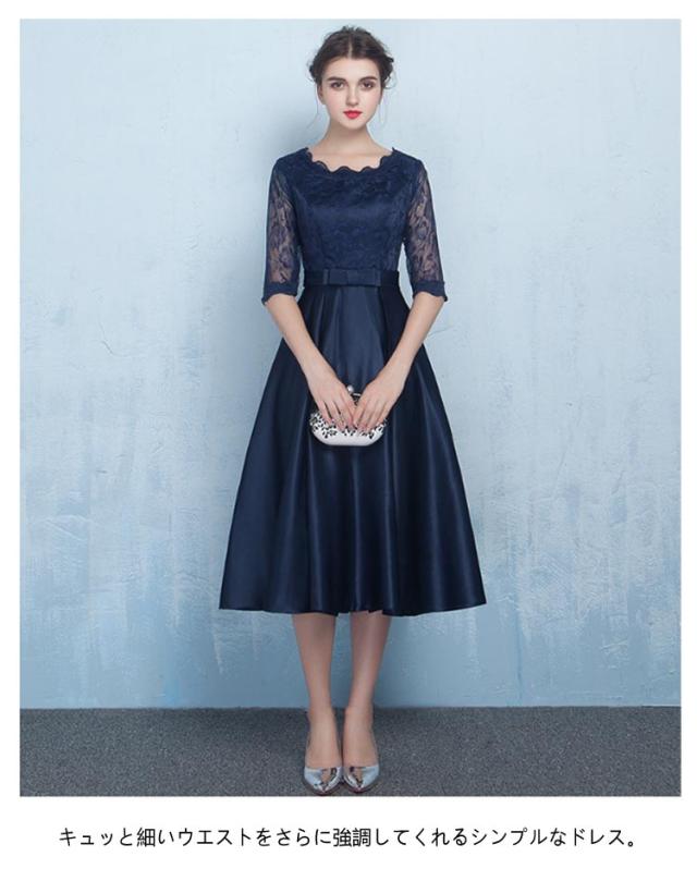 レース 結婚式 結婚式 袖あり aライン ドレス お呼ばれパーティードレス リボン シースルー パーティードレス フレア パーティードレス ミモレ丈 大きいサイズ ワンピース 結婚式 二次会 謝恩会 ゲスト