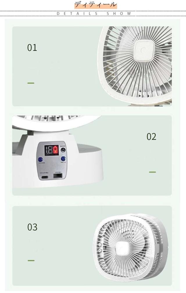 | ソーラーパネルを設置し、自ら発電して運転できるソーラーパワーファン。 発電した電気は内臓バッテリーに充電されるので、電源がない場所や停電時でも運転可能。 さらに充電した電気は外部USB機器に供給することもできます。 LEDライトを搭載して、暗闇の中ランタン代わりに使える多機能扇風機です。 折りたためるのでコンパクトに収納できます。 室内だけでなく、キャンプなどアウトドアでもご使用いただけます。 | |