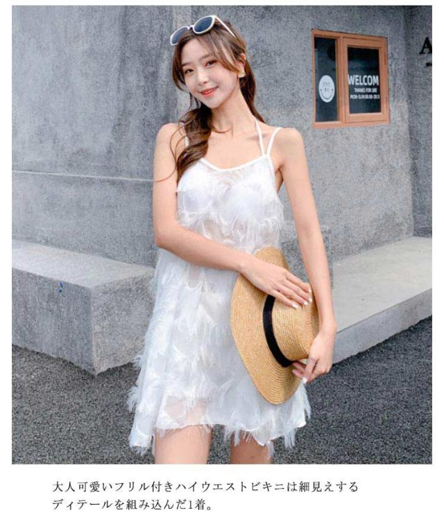水着 ビキニ セパレート キャミワンピース 3点セット フリル ハイウエスト パッド付き 大人 可愛い 水着 体型カバー ママ水着 レディース スイムウェア お腹 カバー 20代 30代 40代 S M L XL