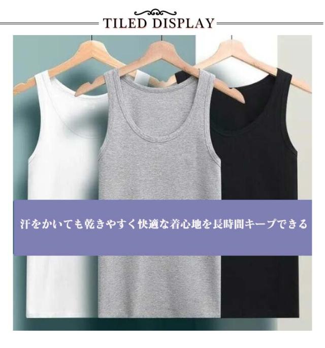 | 吸汗速乾 タンクトップ 生地の耐久性がとても強く抜群の伸縮性を実現 汗をかいても乾きやすく快適な着心地を長時間キープできる | |